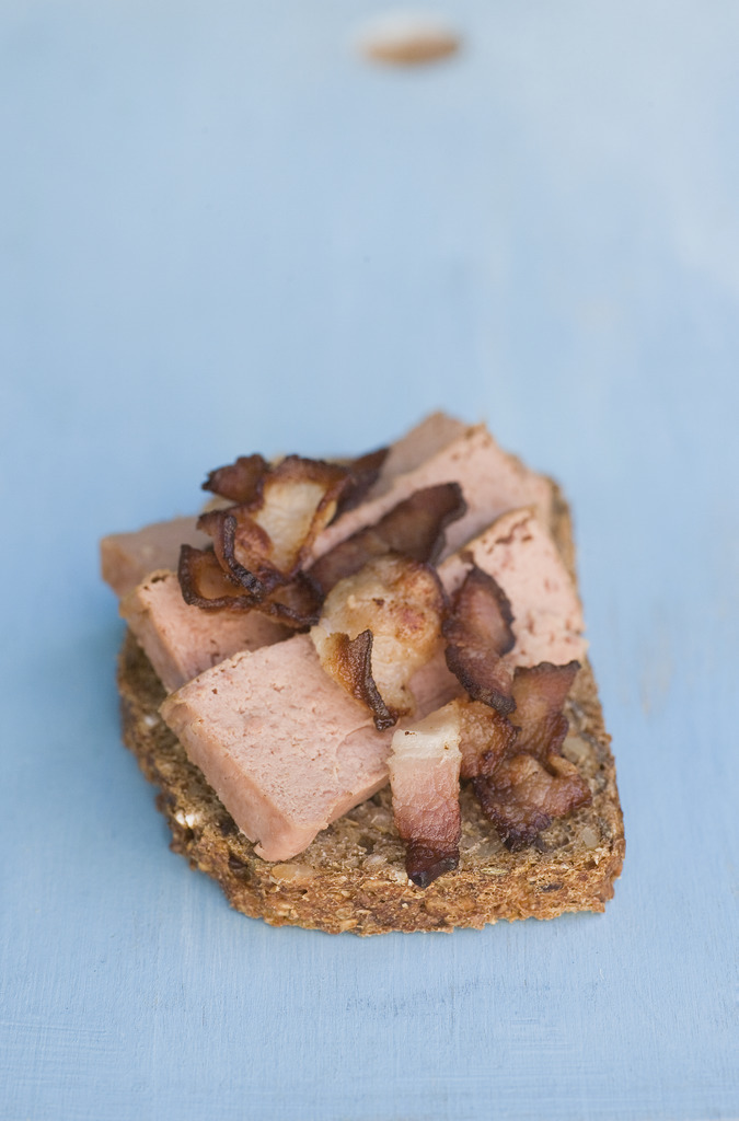 skive med leverpostei og bacon