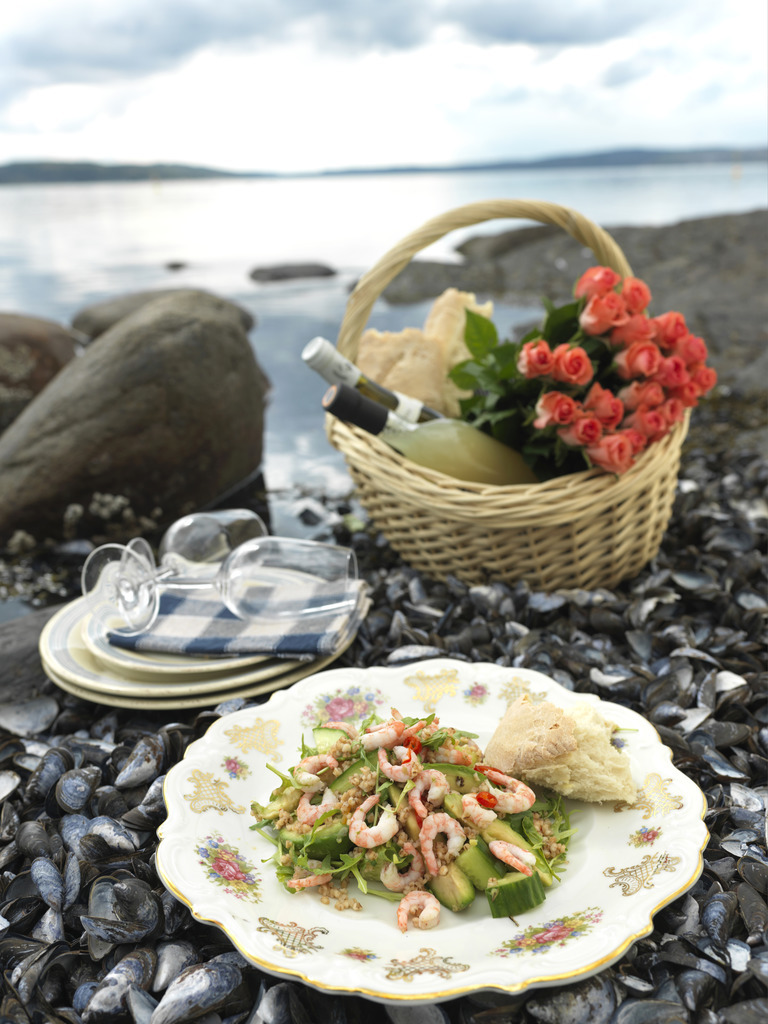 Byggrynssalat med mozzarella, melon og røkt skinke