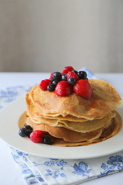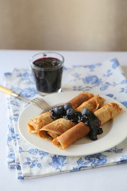 pannekake, pannekaker, bær, blåbærsyltetøy, grunnoppskrift